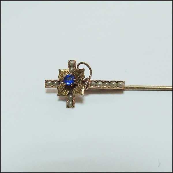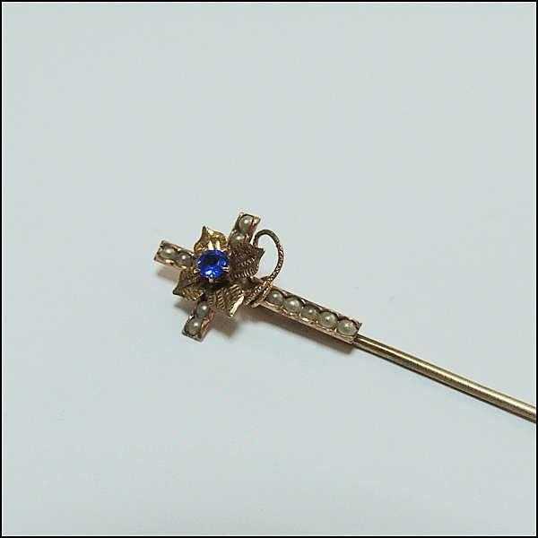 Antika 14K 14 Ayar Altın Kum İnci ve Mavi Taşlı Haç Yaka İğnesi Stickpin 0042 başlıklı ürün, Antika-Koleksiyon, Hobi-Sanat > Antika > Antika Takı ve Mücevher > Broş kategorisinde İkinci El olarak satışa sunulmuştur.