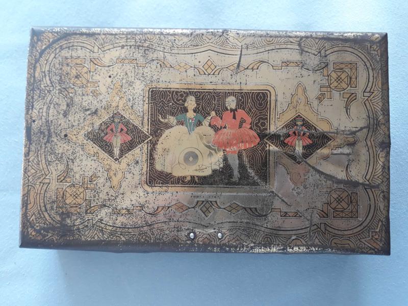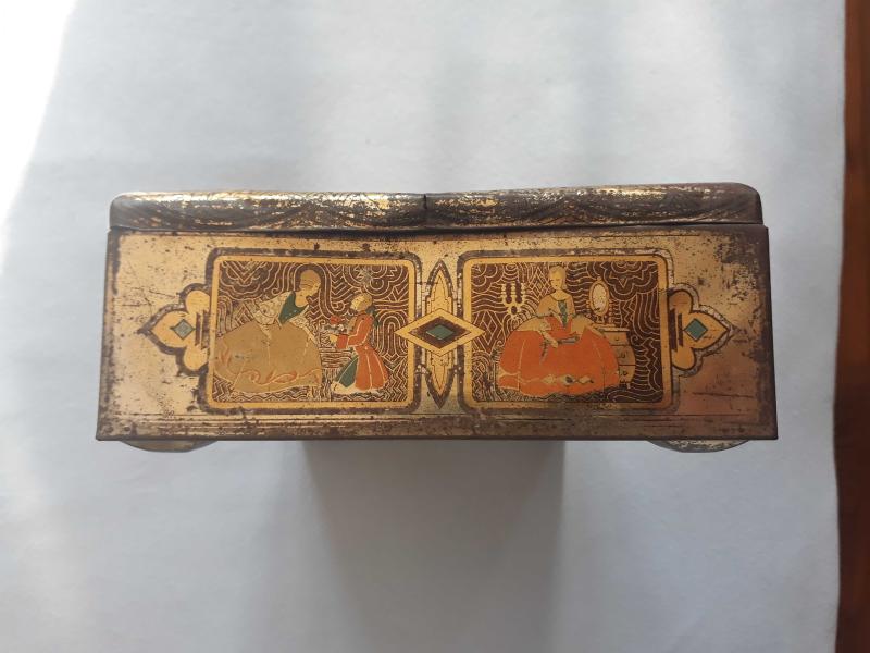 Yaklaşık 150 yaşında dikiş kutusu olarak kullanılmış, üzeri çok zarif resim ve motiflerle işlenmiş teneke kutu
