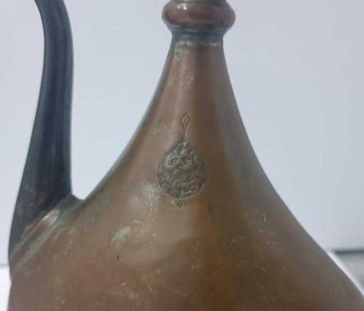 Antika 19. YY Kaşkul Ağızlı Bakır Sürahi İslami başlıklı antika/koleksiyon objesinin menşei belirtilmemiştir. 1900 öncesi dönemine aittir.
