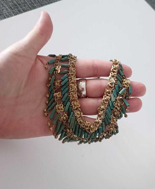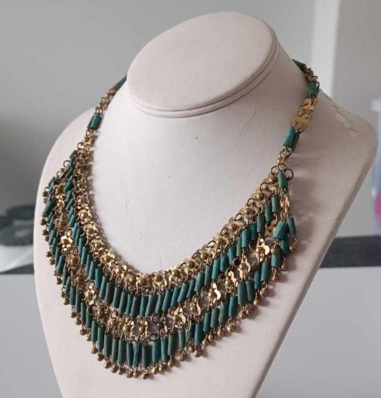 Antika 1900 lerin Başı Egyptian Revival Altın Kaplama Telkari Turkuaz İmitasyonu Taşlı Kolye, bir ay önce kitantik’te satışa sunulmuştur.