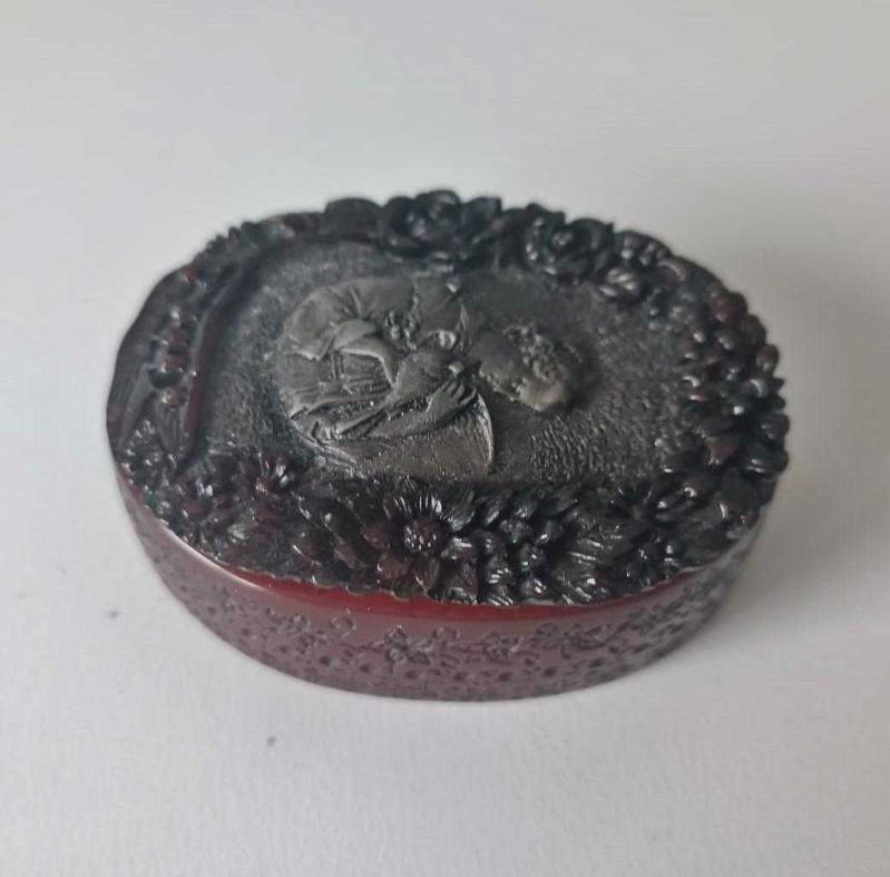 Antika 19YY Bakalit Benzeri T.P Danbiere İmzalı Küçük Kutu 1890 Paris Fuarı başlıklı antika/koleksiyon objesinin menşei belirtilmemiştir. 1900 öncesi dönemine aittir.