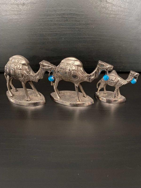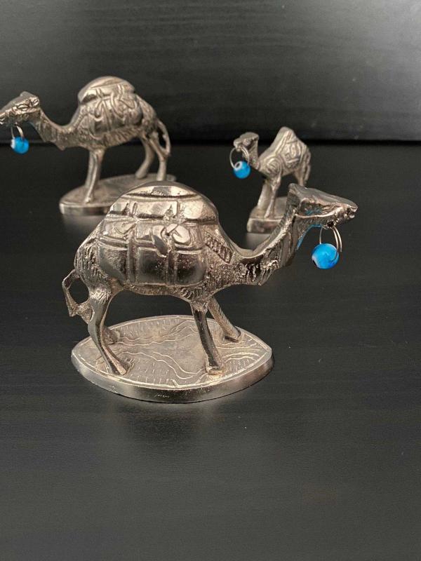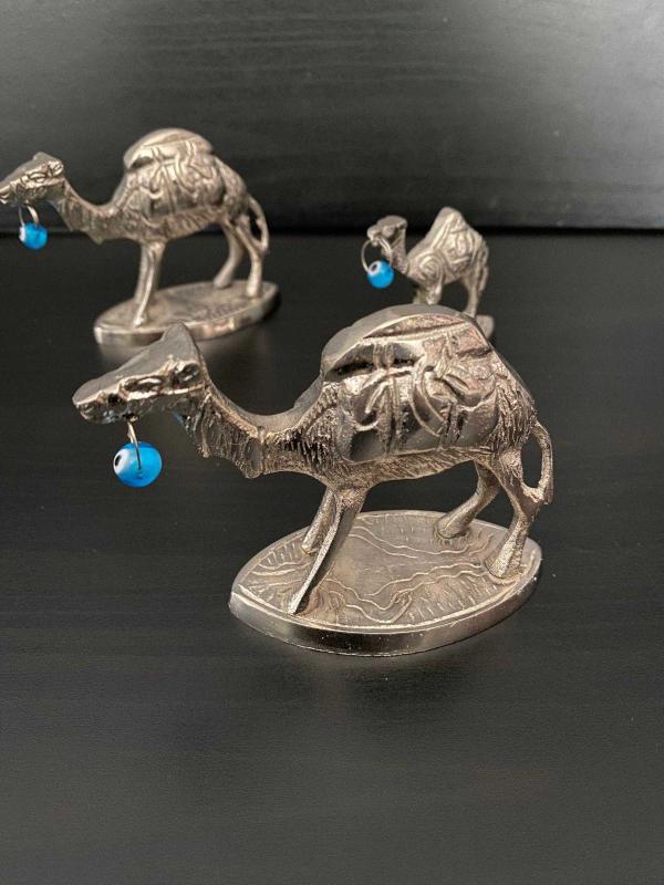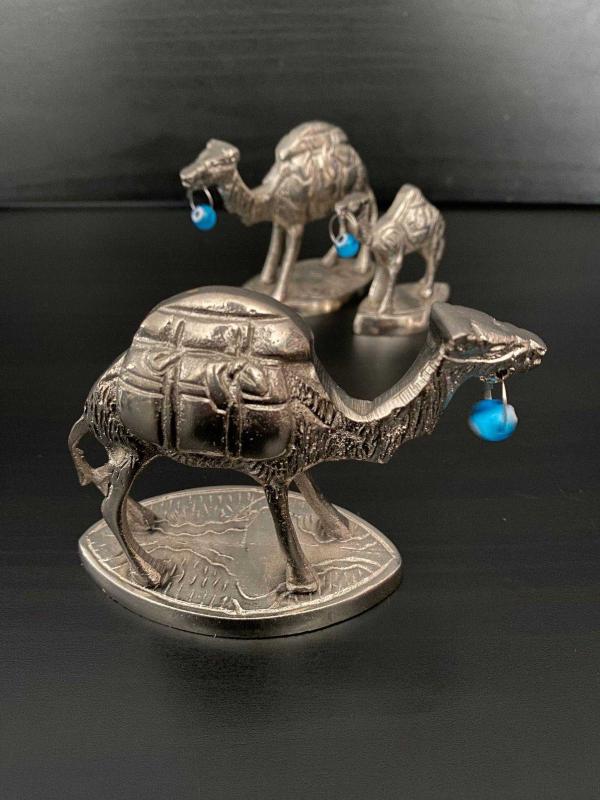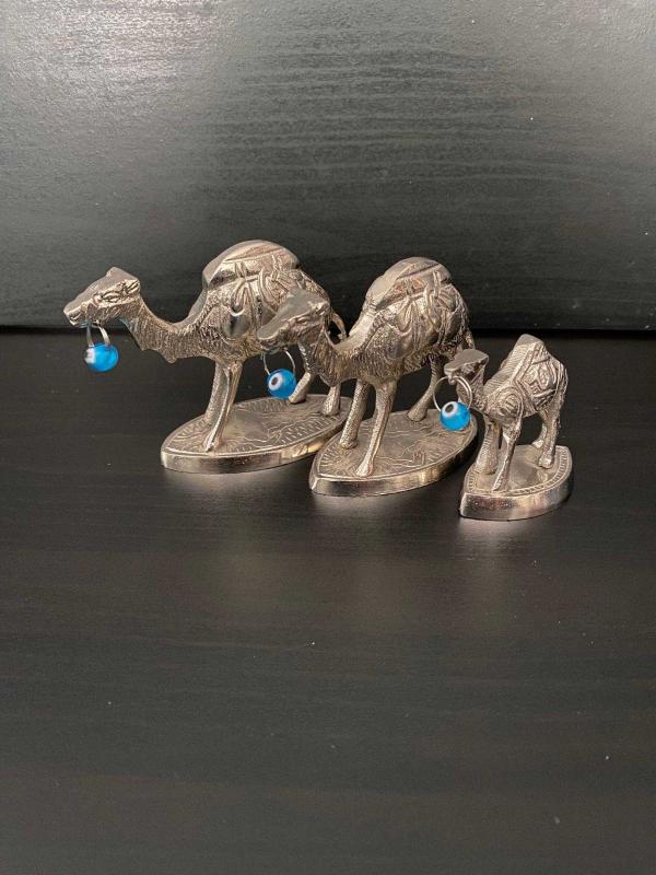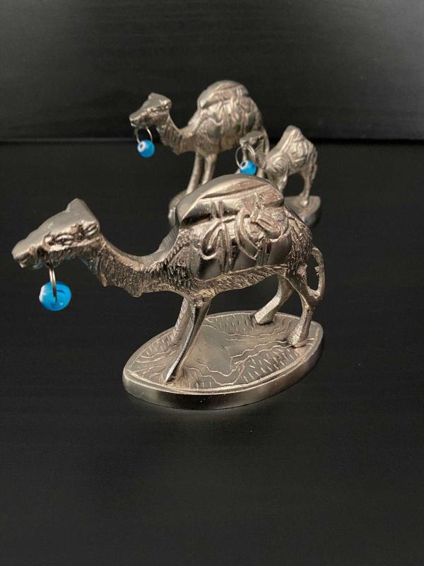 Pirinç malzemeden yapılmış antika develer. En küçük devenin orijinal boncuğu kaybolduğu için üç devenin de boncukları yenilenip aynı boncuklarla değiştirilmiştir. 1970 sonları ila 1980 sonları arasında alındığı biliniyor.