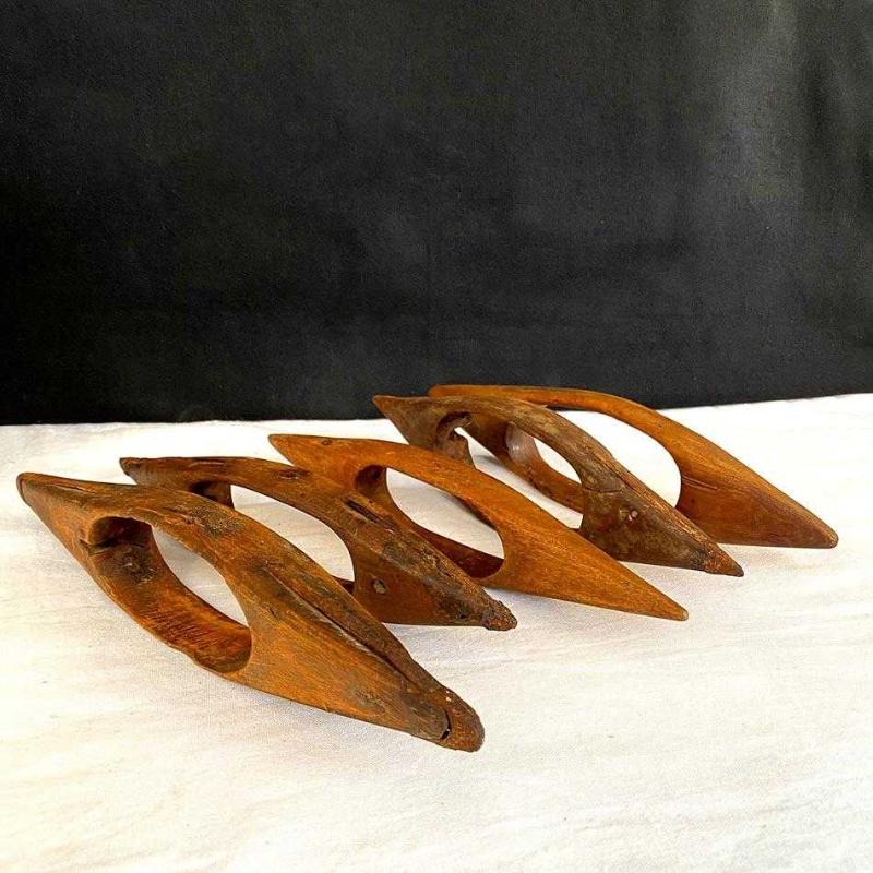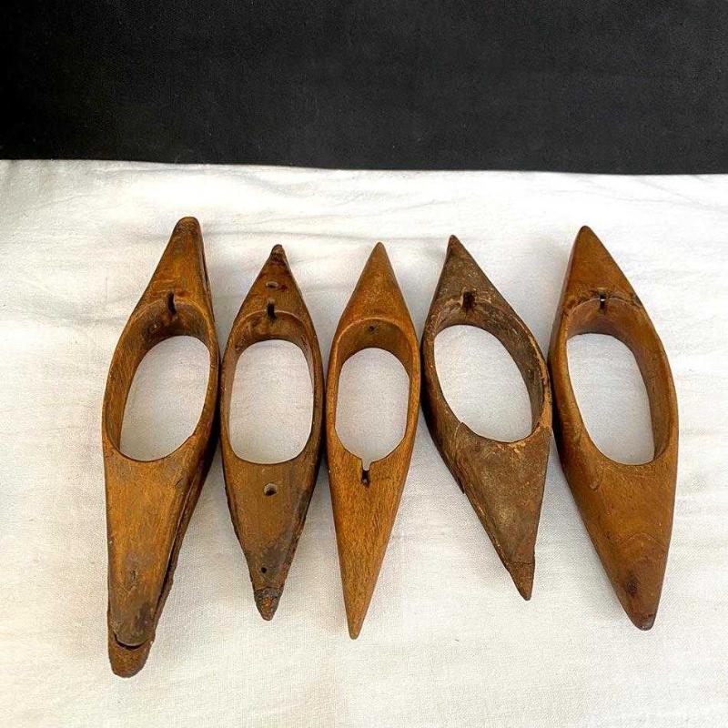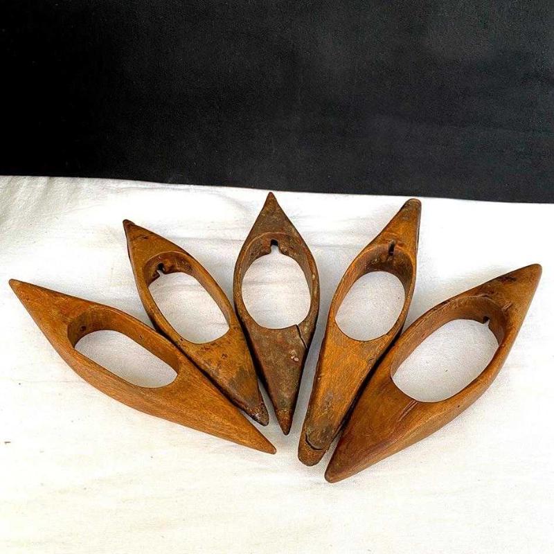 5 adet orijinal, antika el oyması ahşap dokuma mekiği. Nostaljik dokuma aletleri ve dekoratif ahşap eşya meraklıları için orijinal bir set. Mekikler ortalama 22 cm ve yaşlarına göre oldukça iyi durumdalar. 22 cm Toplam: 330 gr