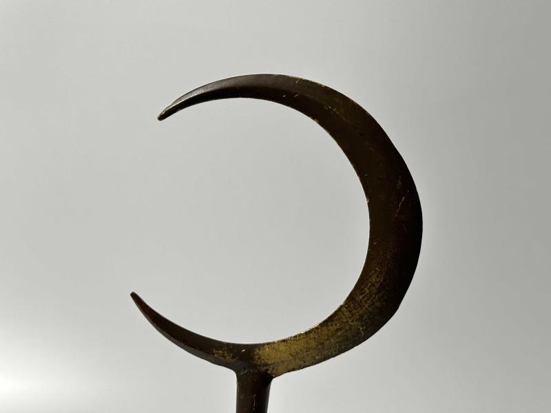 Eski PİRİNÇ - Ahşap Kaideli Ay Yıldız biblo Ağır Malzeme 656 Gram Eski Temiz Sağlam Ölçü Sonda - İade Yoktur