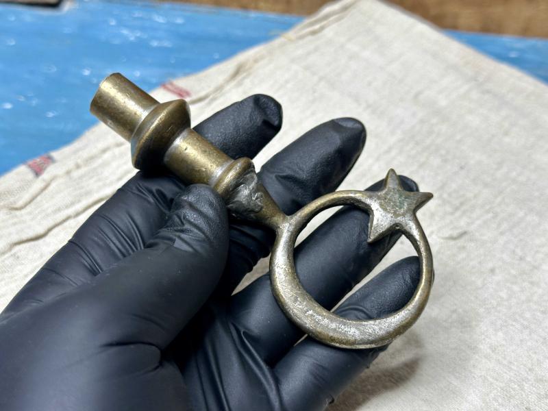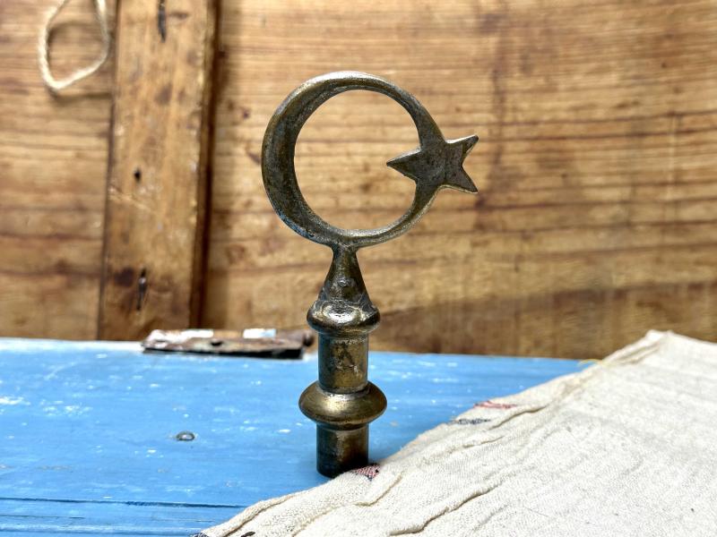 Antika PİRİNÇ Ay Yıldız biblo Bayrak Ucu Eski Temiz Sağlam Ölçü Sonda - İade Yoktur