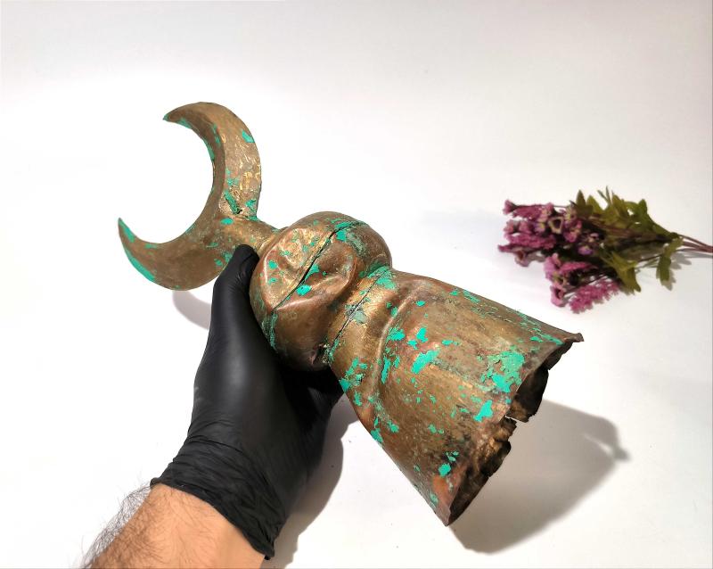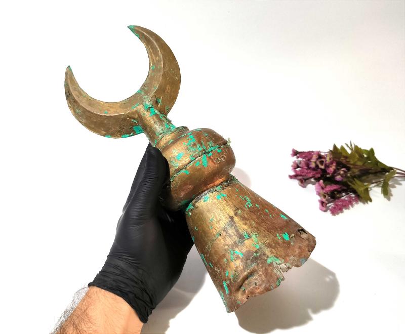 Antika Metal Alem Büyük Boy Ay Yıldız biblo Ağır Malzeme 32 cm X 13.5 cm 470 Gram Eski Temiz Sağlam