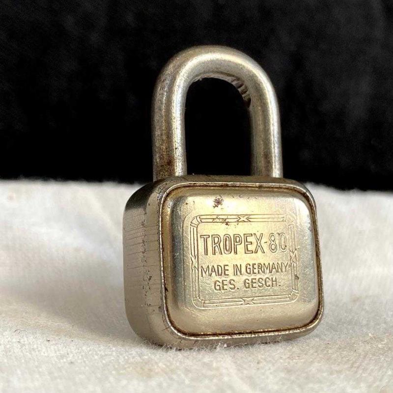 Antika Alman Tropex-80 Minyatür Asma Kilit başlıklı antika/koleksiyon objesi Avrupa menşe’lidir. 1920-1940 arası dönemine aittir.