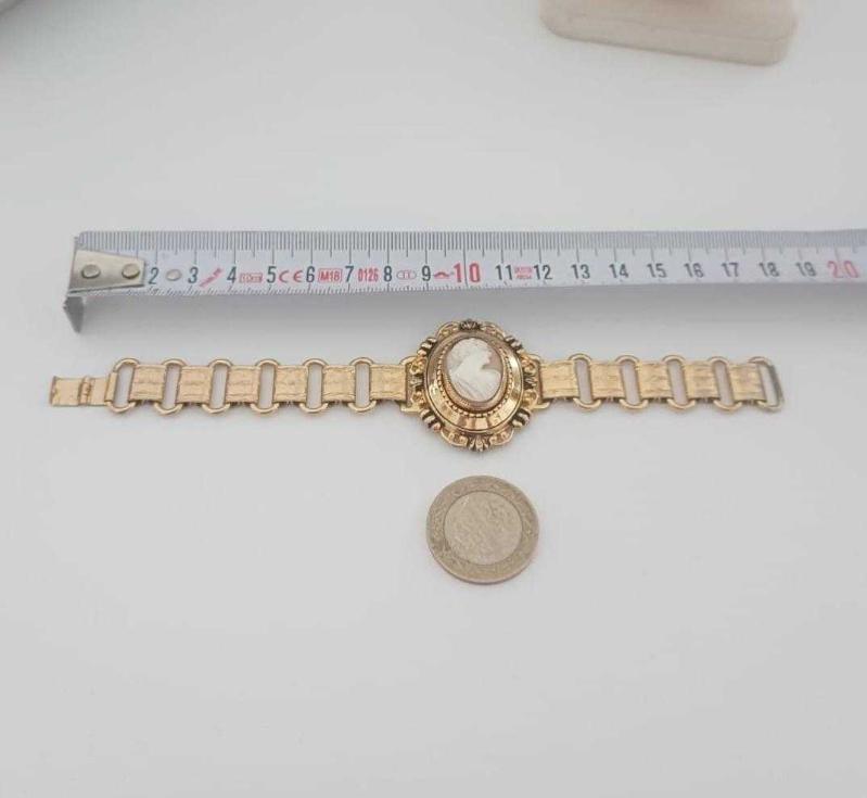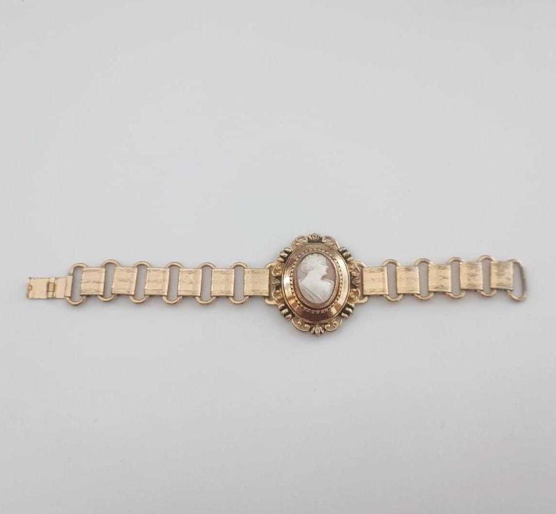 Antika Altın Kaplama Hakiki Shell Cameo Bilezik Bileklik başlıklı antika/koleksiyon objesinin menşei belirtilmemiştir. 1920-1940 arası dönemine aittir.