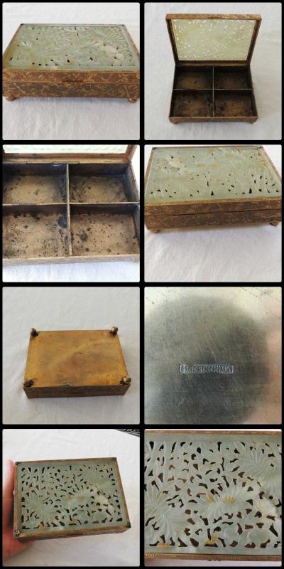 Antika Altın Kaplama Metal Oyma Jade Yeşim Taşı Kutu ÇİN başlıklı antika/koleksiyon objesinin menşei belirtilmemiştir. Objenin ait olduğu dönem bilinmeketedir.