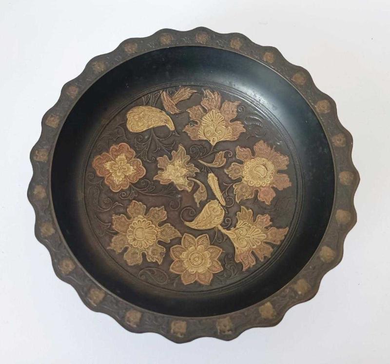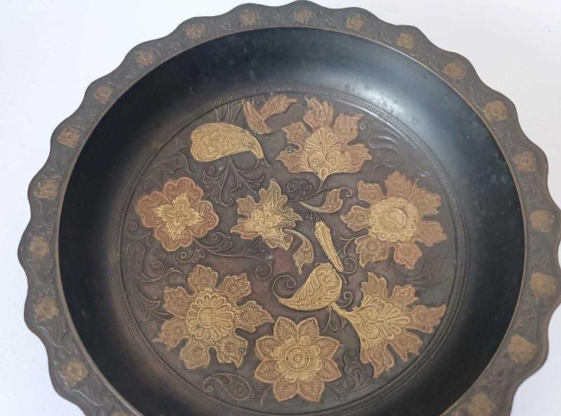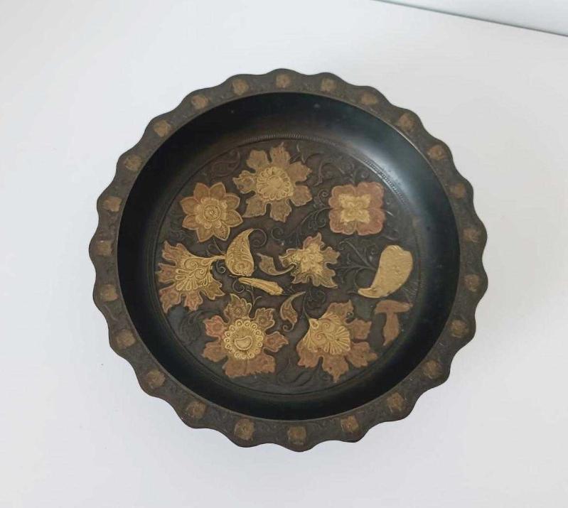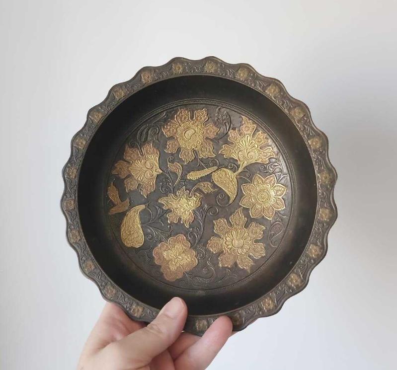 Antika Altın ve Bakır Kakma Metal Tas başlıklı antika/koleksiyon objesinin menşei belirtilmemiştir. 1900-1949 arası dönemine aittir.