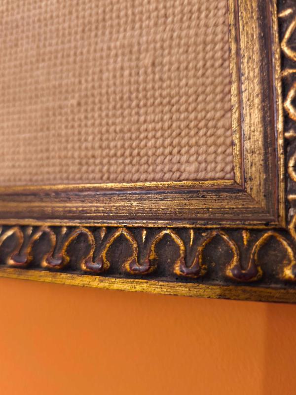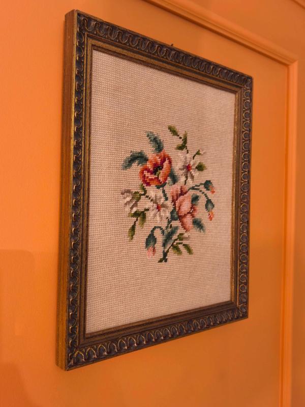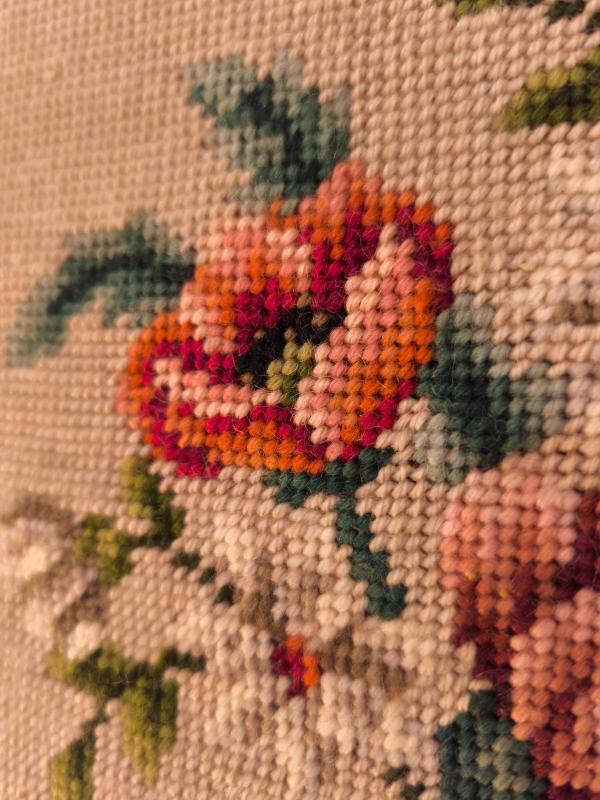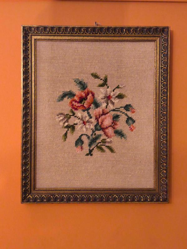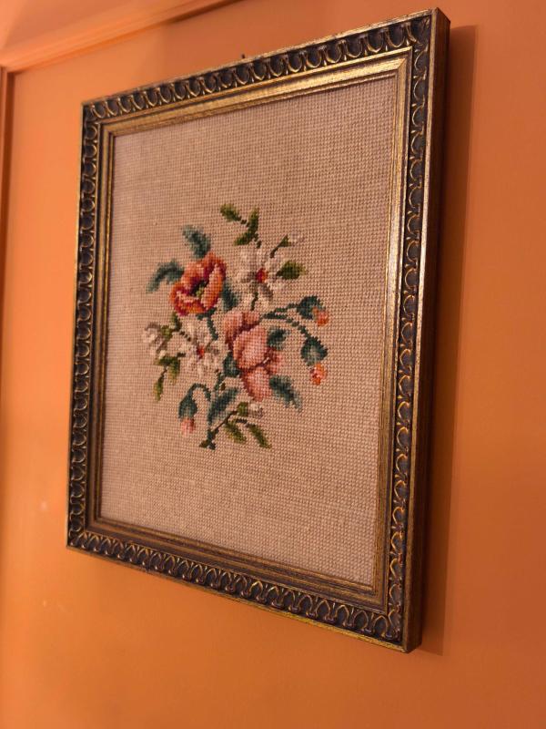 Ahşap el oyma çerçevesinde. Komple el işi goblen işleme tablo. Yaşlı diri naif havalı. uyguna.. 31x37 cm
