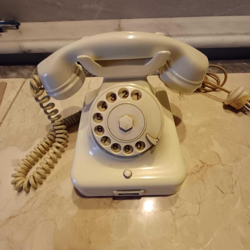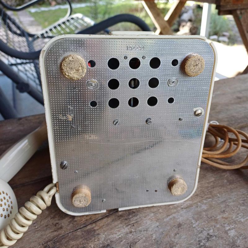 Bakalıt krem rengi çevirmeli telefon. İyi durumda ve çalışır vaziyette. Markası Ericson olduğu söylendi ancak buna dair bir ibare yok. Kusurlar: Sağ alt köşede bakalitte çatlak ve kırık mevcut (bkz foto) Ahize yerinden kaldırılınca yukarı kalkan kişinin altında minik çatlak.