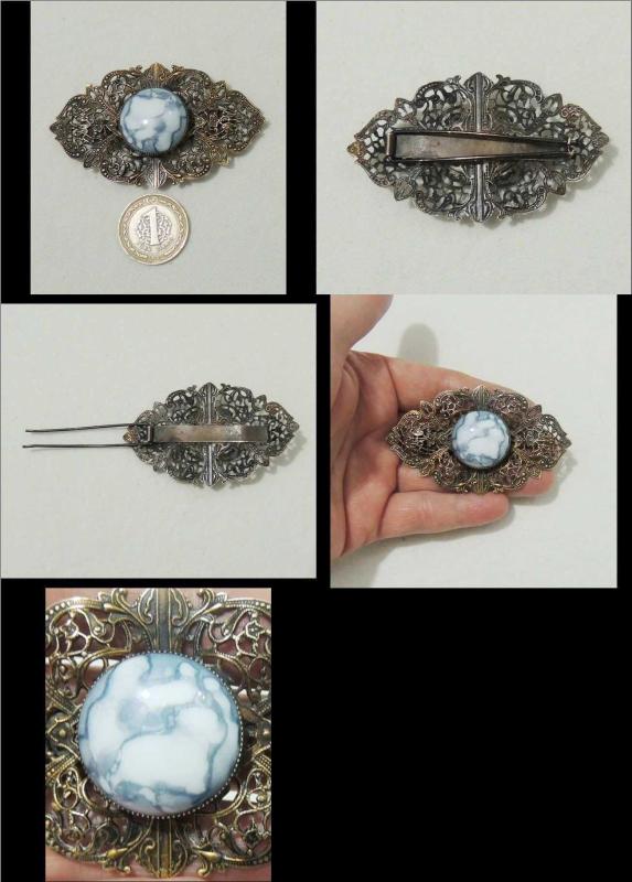 Antika Bakır Dantel Porselen Taşlı Kürk İğnesi 0006 başlıklı antika/koleksiyon objesinin menşei belirtilmemiştir. 1900-1949 arası dönemine aittir.