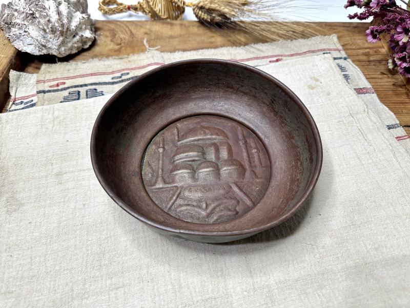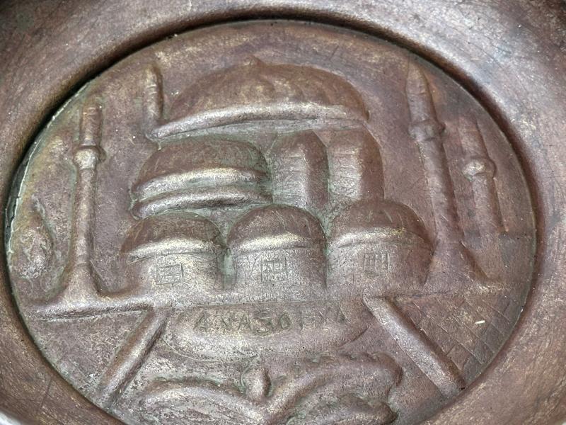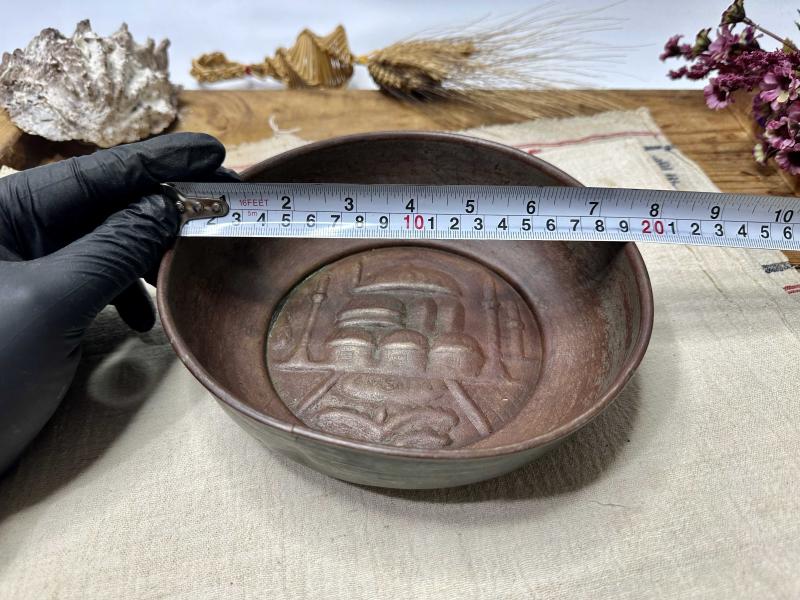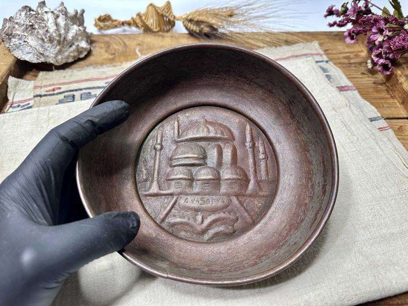 Antika Bakır Hamam Tası - AYA SOFYA Kabartmalı - Süslemeli Şifa Tası - Çok Büyük Boy - NADİR başlıklı antika/koleksiyon objesinin menşei belirtilmemiştir. Objenin ait olduğu dönem bilinmeketedir.