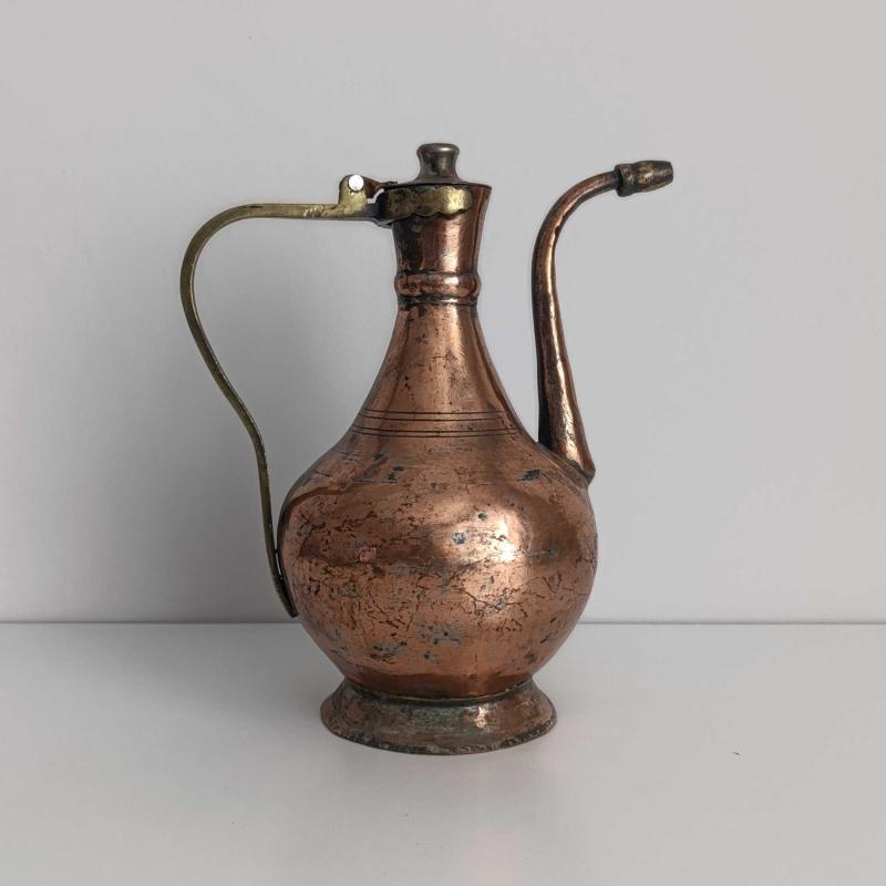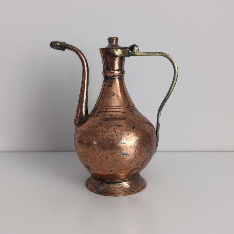 Antika Bakır İbrik başlıklı antika/koleksiyon objesi Türkiye menşe’lidir. 1940-1959 arası dönemine aittir.