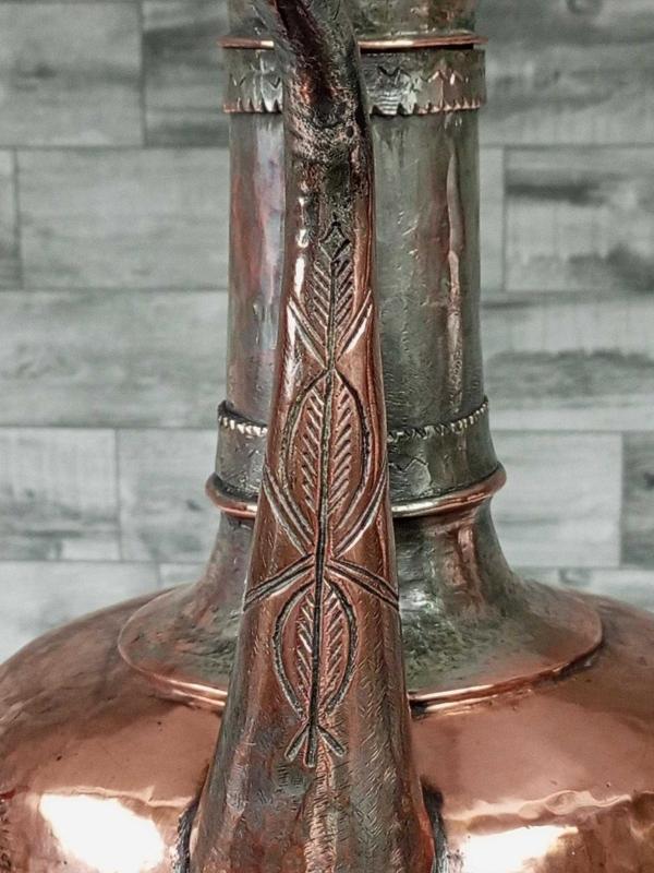 Antika Bolu Osmanlı Kızıl Bakır İbrik başlıklı antika/koleksiyon objesi Türkiye menşe’lidir. 1920-1940 arası dönemine aittir.