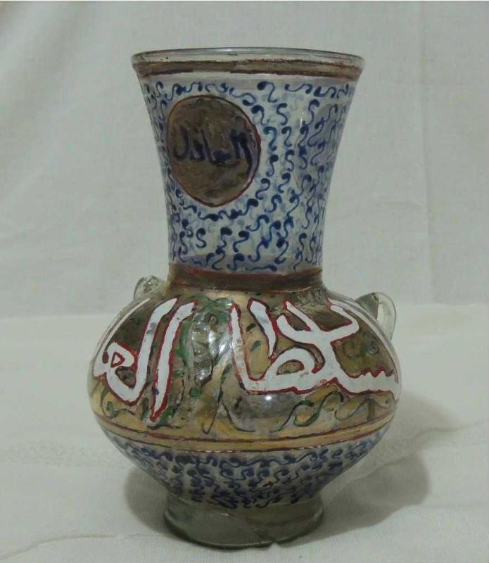 Antika Cam Üç Kulplu İslami Kandil başlıklı antika/koleksiyon objesinin menşei belirtilmemiştir. Objenin ait olduğu dönem bilinmeketedir.