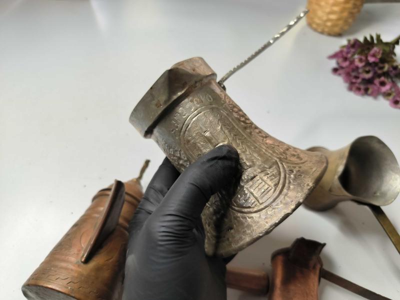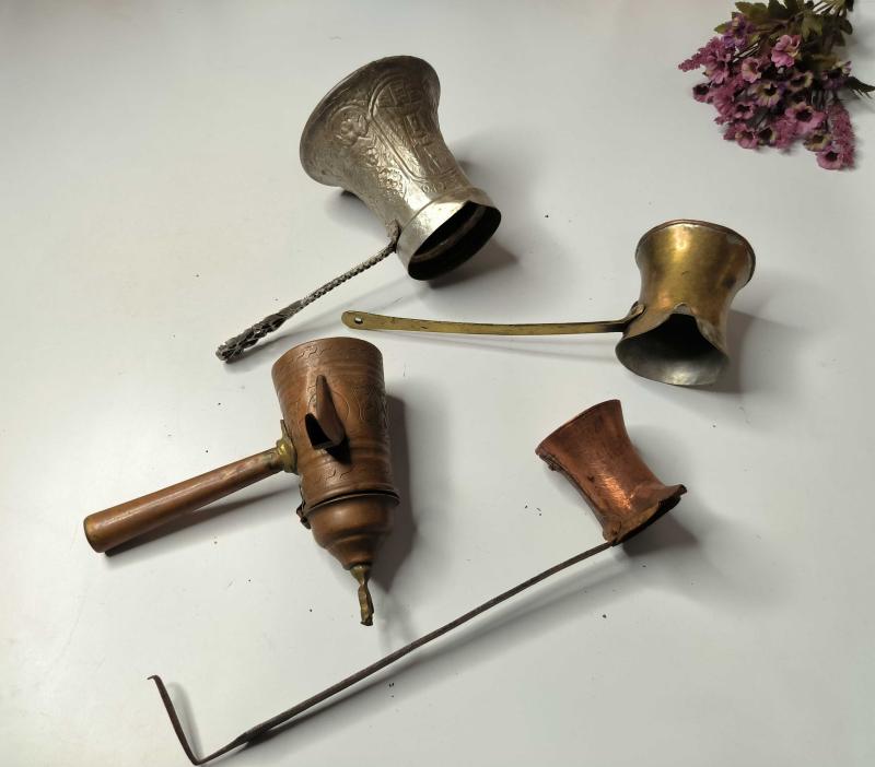 Antika Cezve Lotu - Bakır Malzeme Türk Kahvesi Cezveleri - Bosna İşi - Osmanlı Modeli başlıklı antika/koleksiyon objesinin menşei belirtilmemiştir. Objenin ait olduğu dönem bilinmeketedir.