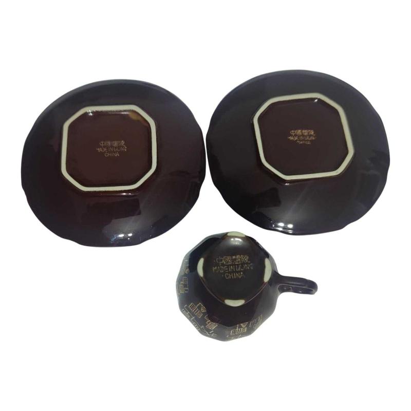 Antika Çin Damgalı Espresso Fincanı. 50 ml kapasiteli, Fincan ağız çapı 5 cm, boy 4.5 cm. Tabak çap 10 cm 2 adet tabak ve 1 adet espresso fincanı olarak satıştadır. Sorunsuz. Kırık , çatlak vs yoktur.