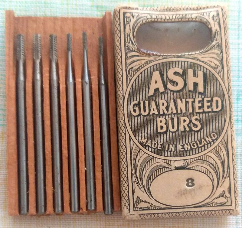 İngiltere'de 1925-1940 yılları arasında üretimi yapılan antika dişçi freze seti.Tıp tarihine tanıklık eden eşsiz ve koleksiyonluk bir parçadır. Frez uçları ,geçmişteki İngiliz dişci aletlerinin işçiliğini ve kalitesini göstermektedir.Bir kutu içinde 6 adet Frez ucu bulunmaktadır.
