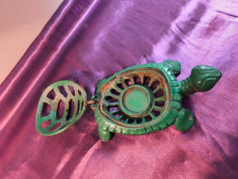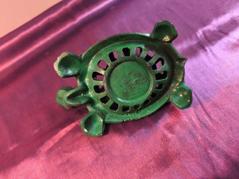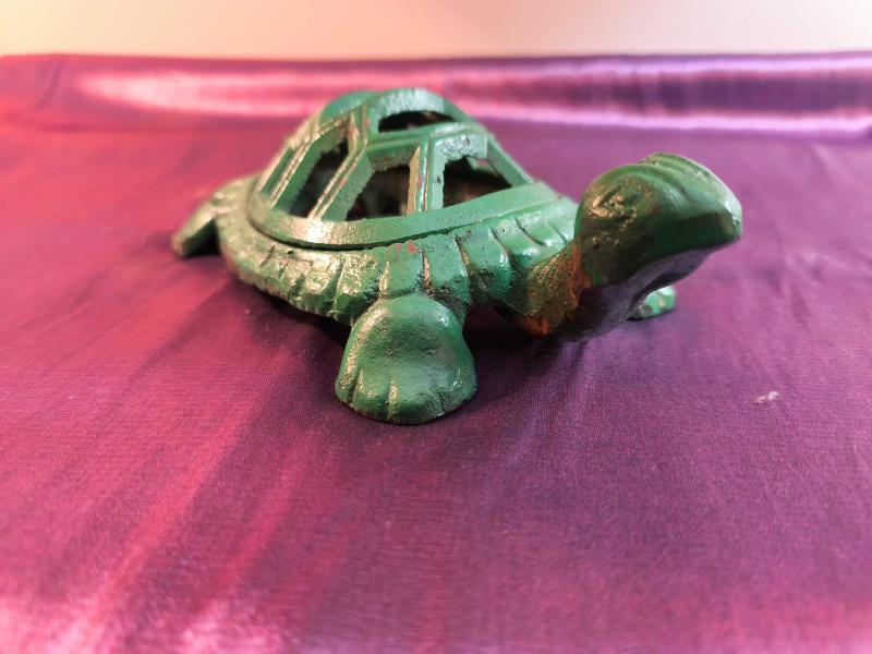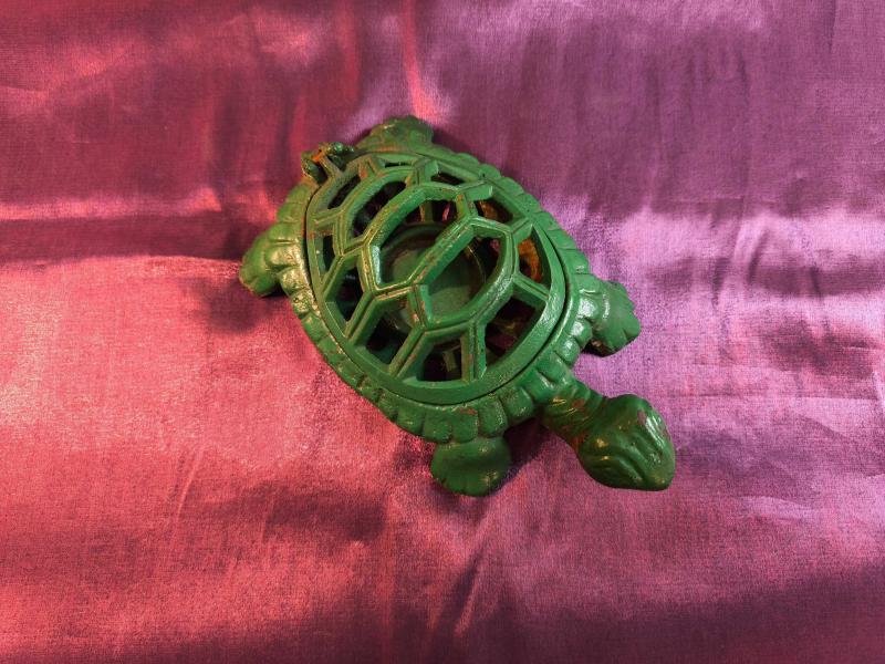 Antika Döküm Mumluk Kaplumbağa Demir, ağır bir ürün. Kapağı açılır kapanır sağlamdır.