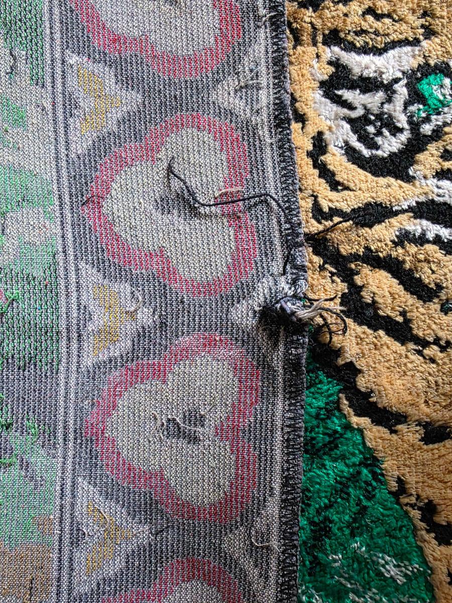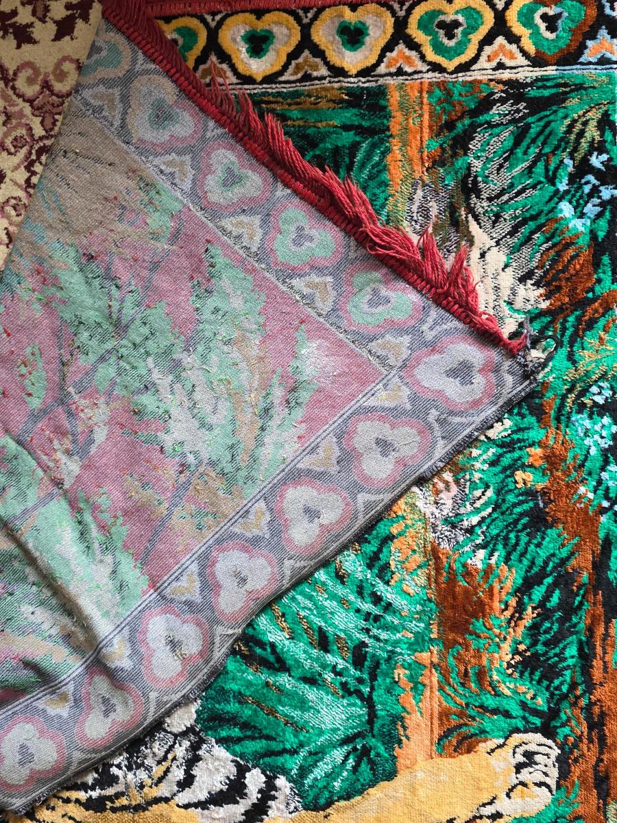 Antika Duvar Halısı KAPLAN AİLESİ TEMALI NADİR MODEL 110X160 CM başlıklı antika/koleksiyon objesi Türkiye menşe’lidir. 1860-1879 arası dönemine aittir.