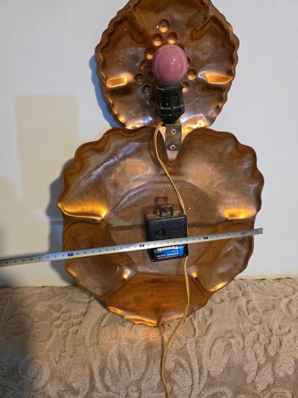 Antika Duvar Saati - HİSLON Marka MİNELİ Kabartmalı Bakır - GECE LAMBALI ÇALIŞIR DURUMDA başlıklı antika/koleksiyon objesinin menşei belirtilmemiştir. Objenin ait olduğu dönem bilinmeketedir.