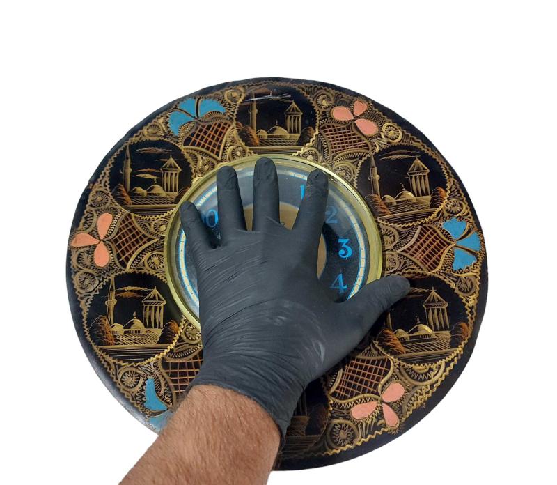 Temiz Duvar saati Bakır işçilikli harika bir saat Cami Kazıma Desenli Çap: 34cm 800 Gram Nacar Duvar saati Pil takıp denemedim - dekor amaçlı satıyorum