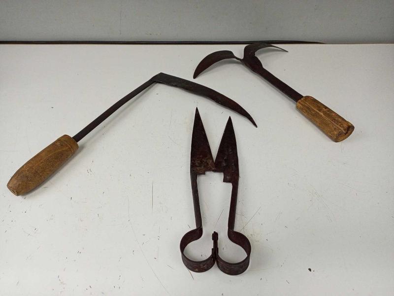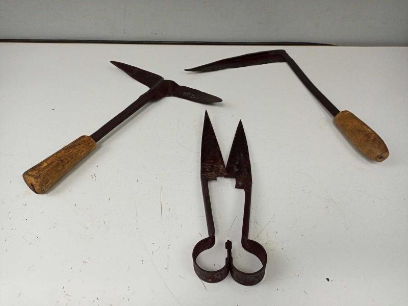 Sizlere 3 adetten oluşan eskilerin dövme demir tekniği ile yapılmış Antika El Aletleri Nalçek - Makas sunuyoruz..