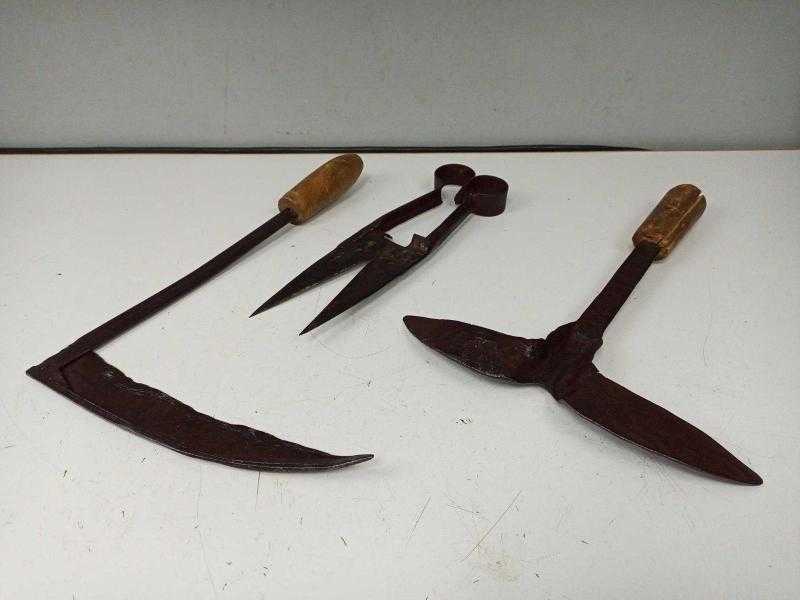 Sizlere 3 adetten oluşan eskilerin dövme demir tekniği ile yapılmış Antika El Aletleri Nalçek - Makas sunuyoruz.. + + + + + + + + Diğer ilanları profilimizde görebilirsiniz + + + + + + + Menşei : Türkiye + + + + + + + + Dönem : 1940-1959 + + + + + + + Kondisyon : Çok iyi