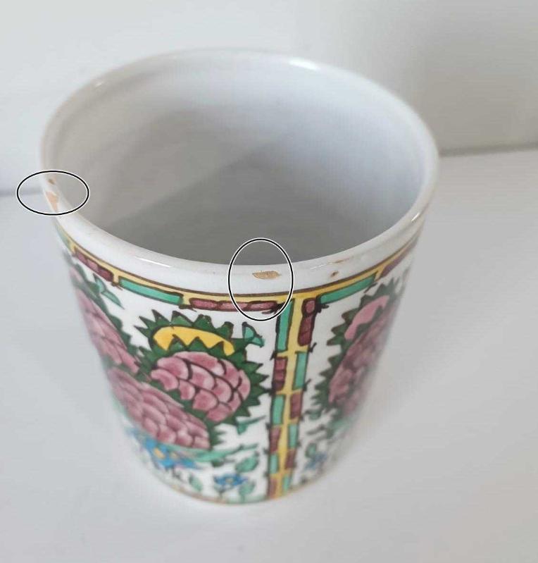 Yükseklik 15 cm. Çap 11cm. Kondisyonu oldukça iyi . Altında arapça damga var. İki yerinde resimlerde de görebileceğiniz gibi 2 küçük atık var.Diğer detaylar için lütfen resimlere dikkatlice bakınız. Amerika dan satın alınmıştır. B4 *Ürünler %100 Orijinaldir.! *Yukarıda anlatımı yapılan ürünü satın almadan önce aklınıza takılan soruları hiç çekinmeden sorabilirsiniz.En kısa zamanda seve seve cevap veririz. *Sattığımız ürünlerin hepsi tarafımızdan garantilidir *Hijyen nedeniyle İadesi yapılamayan ürünler şunlardır; ----Kozmetik ürünleri (Krem, losyon, parfüm, makyaj malzemeleri,vs) ----Mayolar ,İç Çamaşırları ve Giyim Eşyaları. *Kullanılmış, Vintage veya Antika olarak belirttiğimiz ürünler hiçbir zaman SIFIR ürün kondisyonunda değildir ve olmaları da beklenemez. Bu tip ürünlerin kondisyon detayı tarafımızdan ayrıntılı olarak verilecek ve mümkün olduğunca çok resimlenecektir.Vintage ve Antika ürünler,son 20 yıl içinde Amerika nın çeşitli Eyaletlerinde Antika evlerinden, Müzayede evlerinden veya Estate Sale olarak geçen Satış yerlerinden alınmıştır ve kendi özel kolleksiyonumuzdandır. *Patinasını kaybetmemesi için hiçbir antika ürünü temizlemiyoruz. *Alıcılar bizden ürün alırken bu şartları kabul etmiş demektir.! İYİ ALIŞVERİŞLER!!!