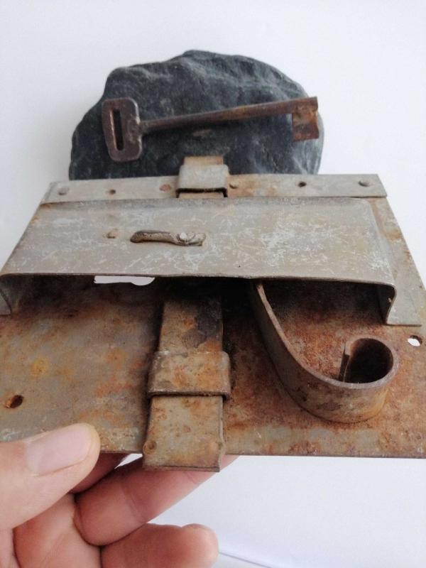 Antika El Yapımı Anahtarlı Demir Kapı Kilidi -- Eski Tip Kilit - Büyük Boy Köy Kapısı Kilit başlıklı antika/koleksiyon objesinin menşei belirtilmemiştir. Objenin ait olduğu dönem bilinmeketedir.