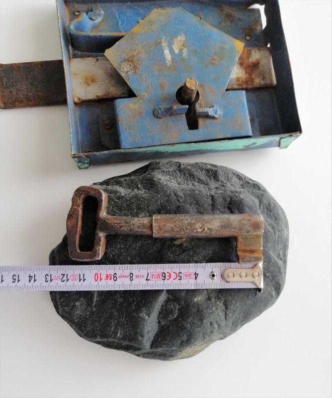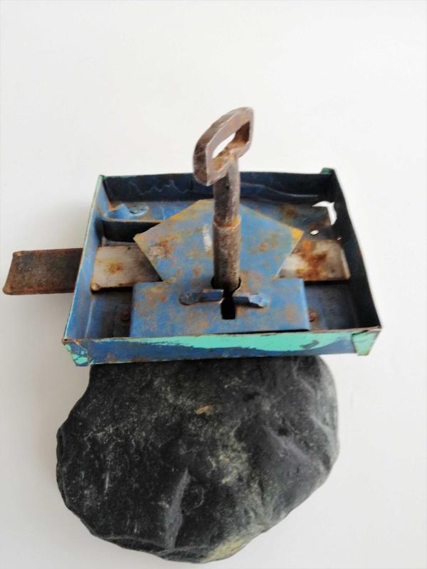Antika El Yapımı Anahtarlı Demir Kapı Kilidi -- Eski Tip Kilit - Köy Kapısı Kilit başlıklı antika/koleksiyon objesinin menşei belirtilmemiştir. Objenin ait olduğu dönem bilinmeketedir.