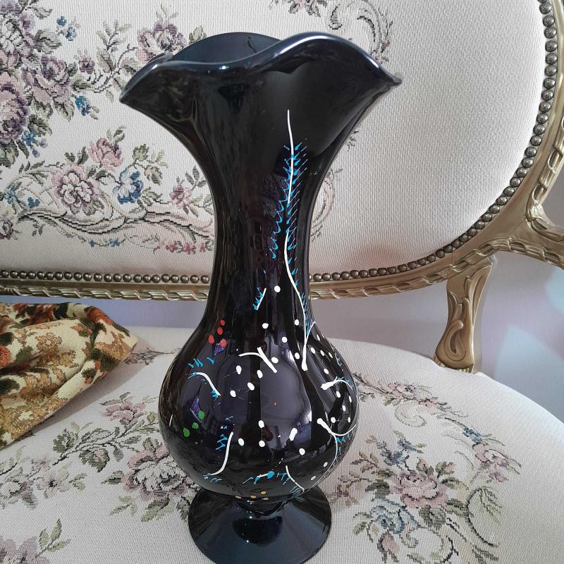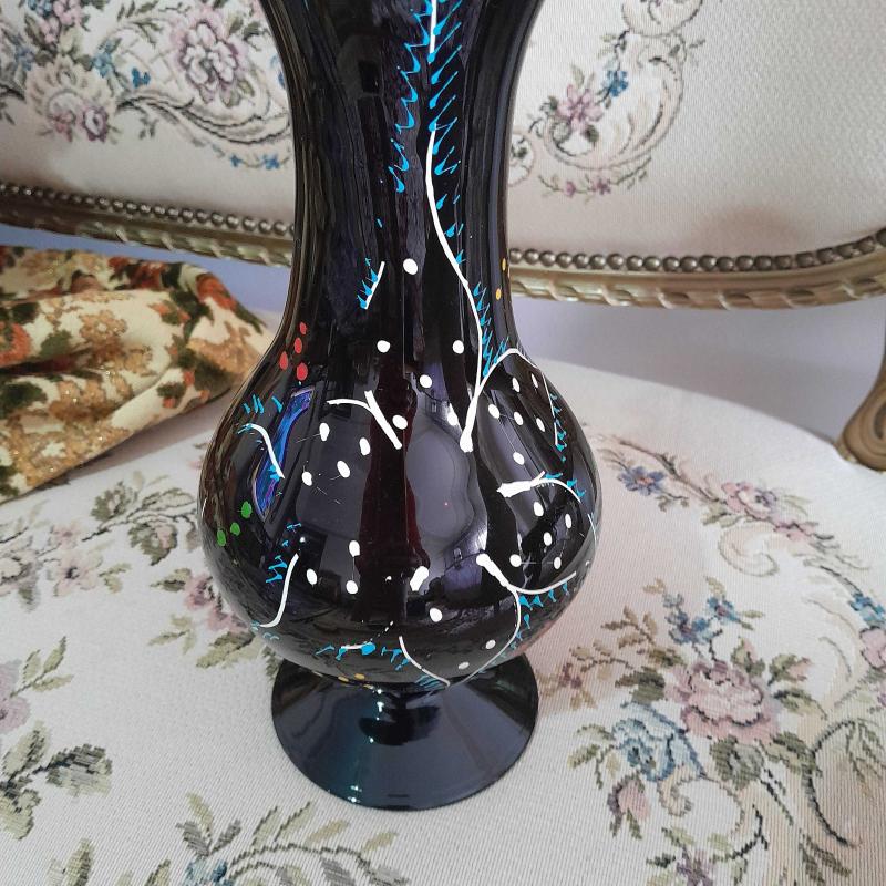 El yapımı murano cam vazo olup hatasızdır. Alt kısmında hafif cam çıkıntısı olup yine alt kısmında da hafif çizilmeler olmuş. Eski el yapımı ürünlerde normaldir. Yere tam oturur hatasızdır