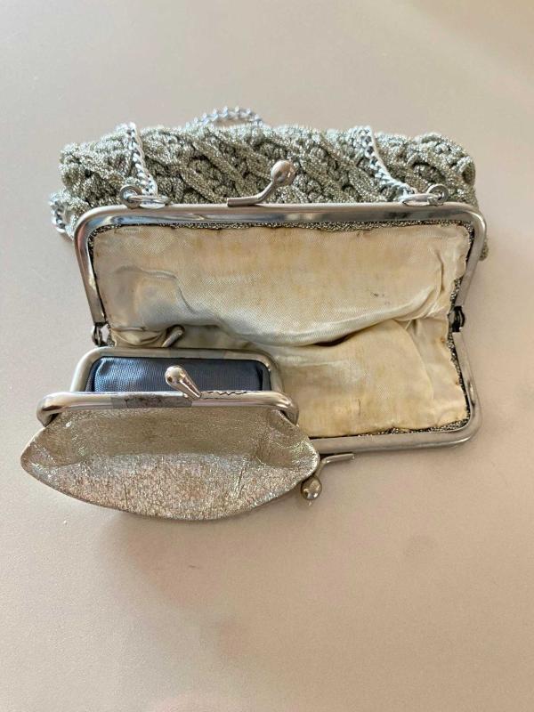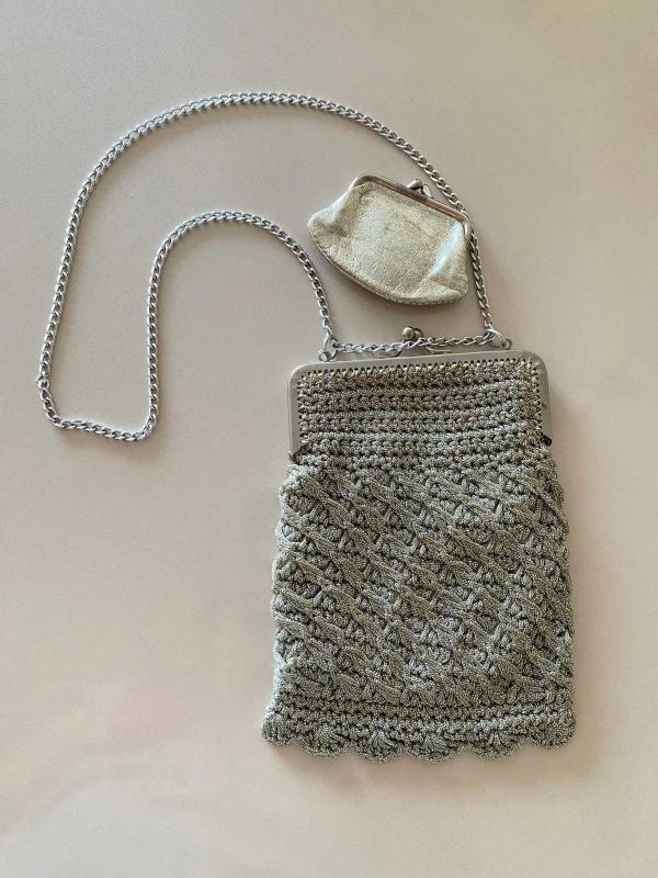 Ürün El Örgüsü tığ işi saten astar ve minik para cüzdanı 1930-1940 arası antika el işi çantadır.