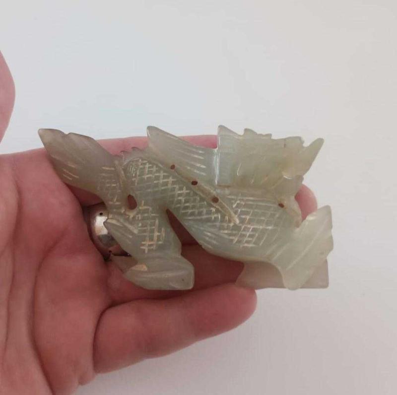 Antika Elde Oyma Nephrite Jade Yeşim Taşı Dragon Figürü Şans ve Bereket Tılsımı Çin başlıklı antika/koleksiyon objesinin menşei belirtilmemiştir. 1920-1940 arası dönemine aittir.