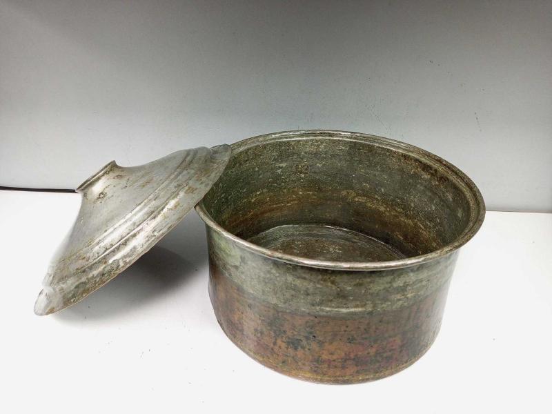 Antika Eski Usta İşçilikli Bakır Kazan - Tencere başlıklı antika/koleksiyon objesi Türkiye menşe’lidir. 1940-1959 arası dönemine aittir.