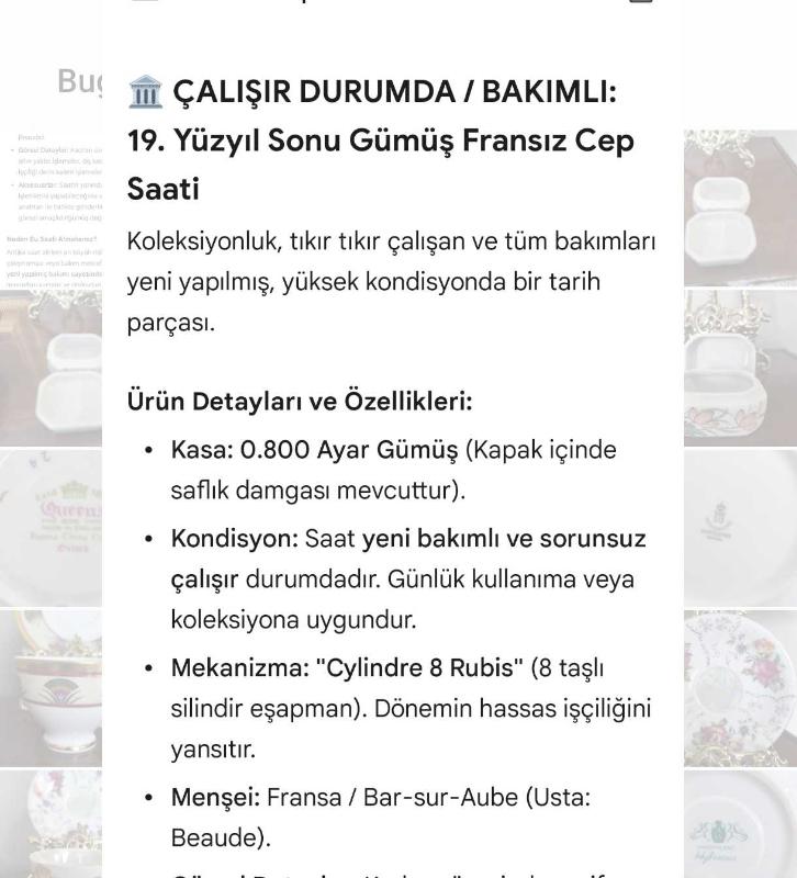 Antika Fransız Gümüş Kasa Köstekli Saat, 5 gün önce kitantik’te satışa sunulmuştur.