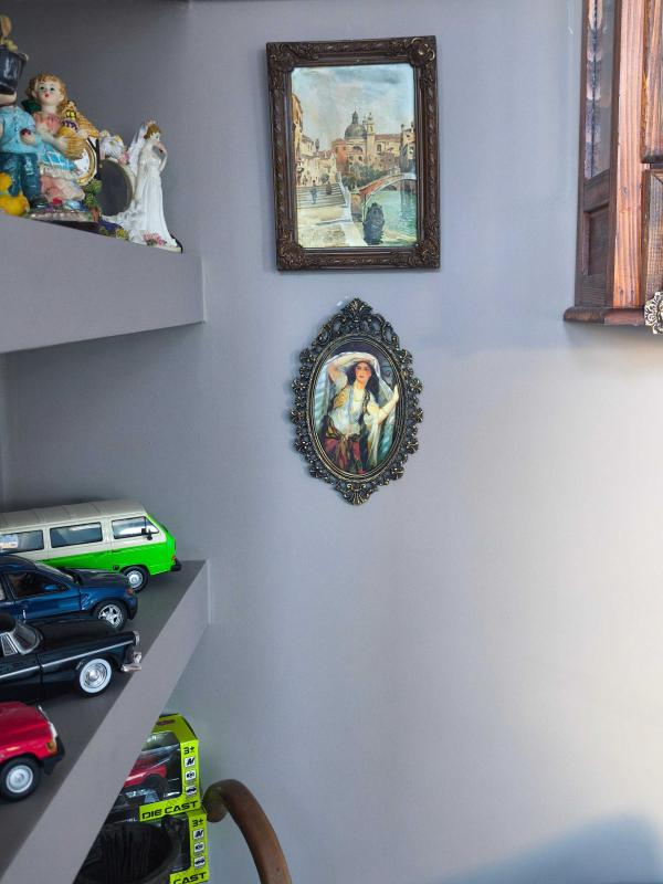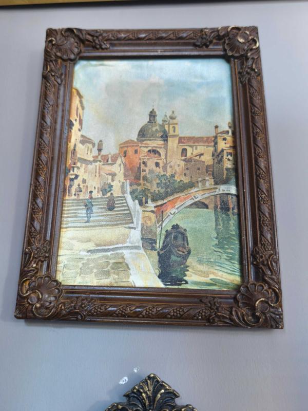 Ahşap oyma çerçevesinde Fransız ipek üzeri baskı ( el boyama da çıkabilir ) Tablo. Yeni dönem değildir. !