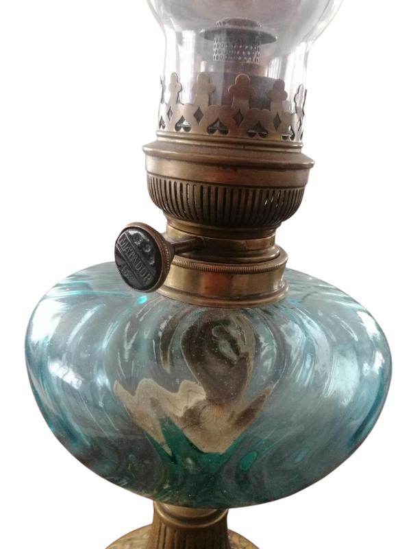 19.yüzyıl Fransız Gaz lambası. Cam hazneli 52 cm boyutunda işlemeli ağır bir üründür.