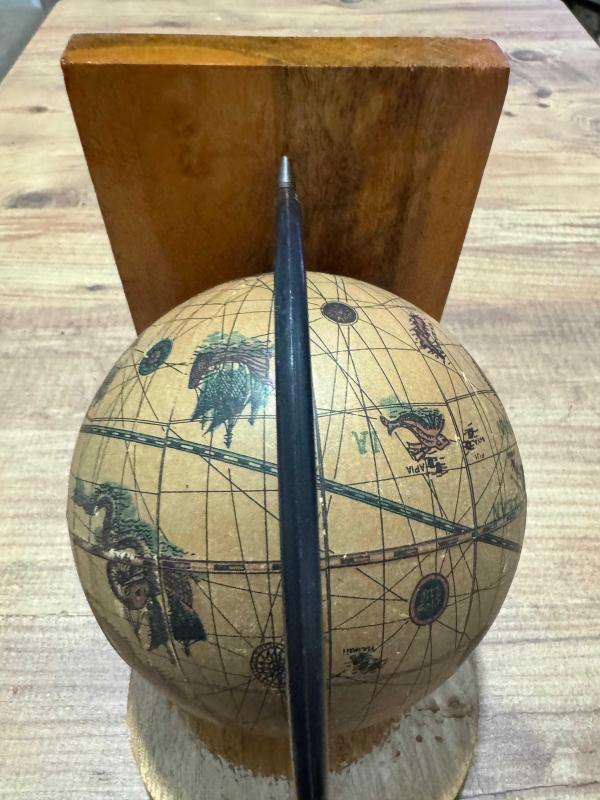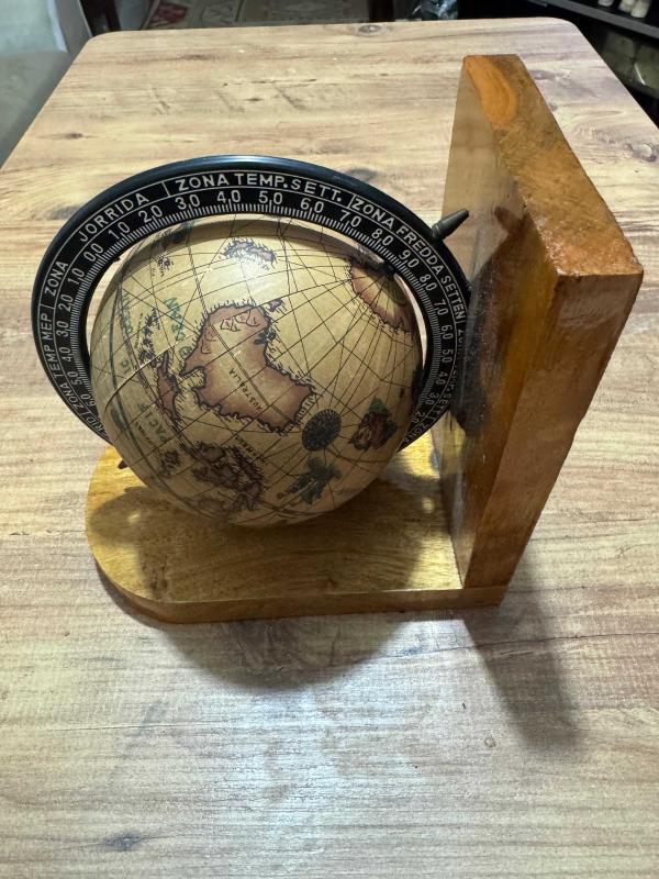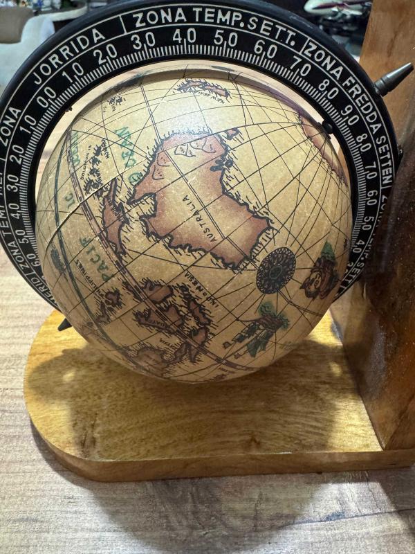 Antika Görünümlü Dekoratif Ahşap Standlı Dünya Küresi başlıklı antika/koleksiyon objesi Türkiye menşe’lidir. Objenin ait olduğu dönem bilinmeketedir.