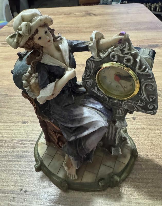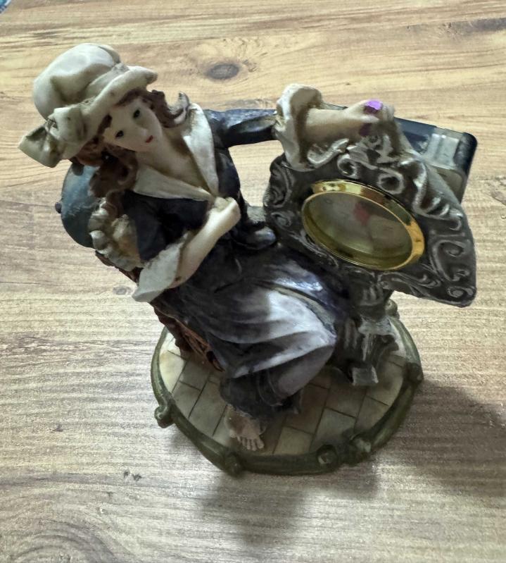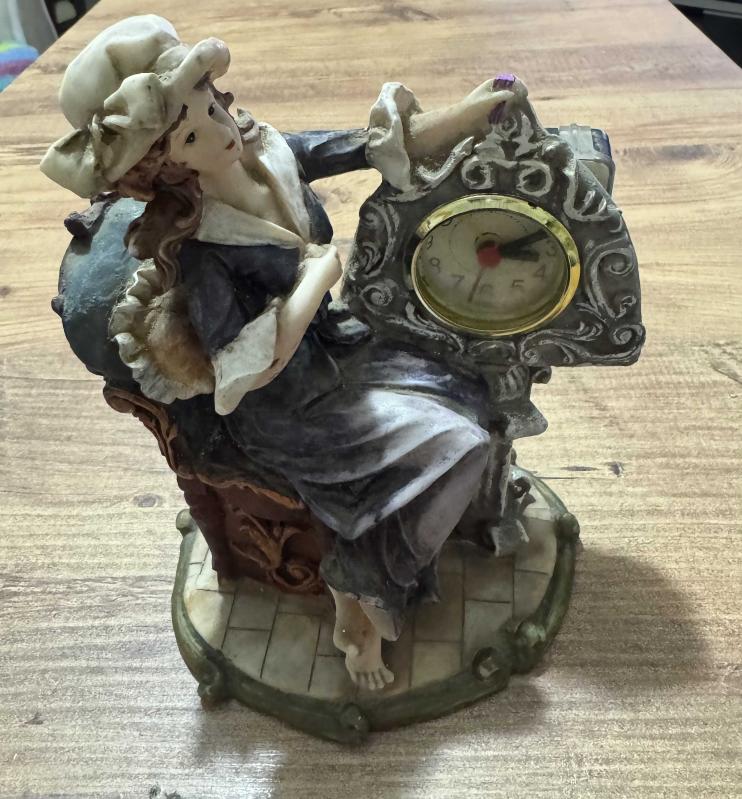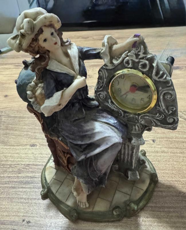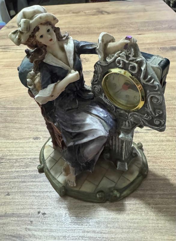 Antika Görünümlü Klasik Kadın Figürlü Masa Saati Zarif kadın figürü ve barok tarzı detaylarla süslenmiş, estetik bir dekoratif objedir. Temiz kullanılmış, vintage bir görünüme sahiptir. Hem saat hem de biblo olarak kullanılabilir. Çalışma masası, konsol üzeri veya kitaplık için mükemmel bir aksesuardır. Şık bir hediye seçeneği olabilir. Poliresin/Döküm benzeri dayanıklı malzeme. Çalışır durumda. 19x 14 cm