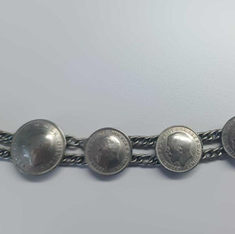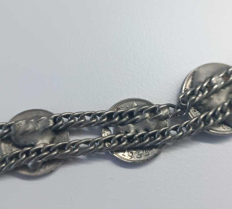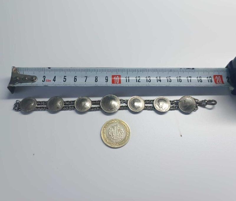 Uzunluk 16cm. Üzerinde 1 adet Kraliçe Victoria dönemine ait ve 6 adet Kral George V dönemine ait madeni paralar var. Paralar zincire lehim ile tutturulduğundan dolayı tarihler görünmüyor ama bir tanesinin arkasında ki tarih 1933. Paralar sonradan gümüş kaplanmış. Kondisyon çok iyi. Amerika dan satın alınmıştır. 0092 *Ürünler %100 Orijinaldir.! ? *Yukarıda anlatımı yapılan ürünü satın almadan önce aklınıza takılan soruları hiç çekinmeden sorabilirsiniz.En kısa zamanda seve seve cevap veririz. ? *Sattığımız ürünlerin hepsi tarafımızdan garantilidir. *Hijyen nedeniyle İadesi yapılamayan ürünler şunlardır; ----Kozmetik ürünleri (Krem, losyon, parfüm, makyaj malzemeleri,vs) ----Mayolar ,İç Çamaşırları ve Giyim Eşyaları. ? *Kullanılmış, Vintage veya Antika olarak belirttiğimiz ürünler hiçbir zaman SIFIR ürün kondisyonunda değildir ve olmaları da beklenemez. Bu tip ürünlerin kondisyon detayı tarafımızdan ayrıntılı olarak verilecek ve mümkün olduğunca çok resimlenecektir.Vintage ve Antika ürünler,son 20 yıl içinde Amerika nın çeşitli Eyaletlerinde Antika evlerinden, Müzayede evlerinden veya Estate Sale olarak geçen Satış yerlerinden alınmıştır ve kendi özel kolleksiyonumuzdandır. *Patinasını kaybetmemesi için hiçbir antika ürünü temizlemiyoruz. ? *Alıcılar bizden ürün alırken bu şartları kabul etmiş demektir.! İYİ ALIŞVERİŞLER!!! ?