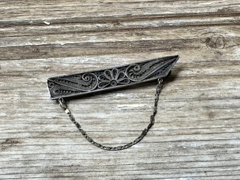 Çok eski gümüş malzeme telkari işçilik Kravat iğnesi --- ama saç tokası olarakta kullanılır. Eski - Temiz - Sağlam Ölçü Sonda - İade Yoktur