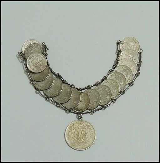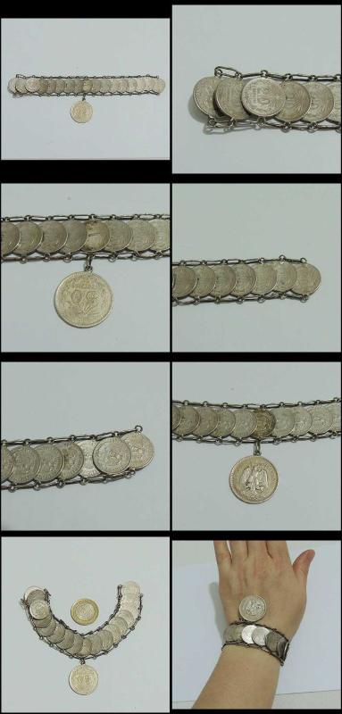 Antika Gümüş Meksika Paraları Bilezik 50 Centavos 20 Centavos başlıklı antika/koleksiyon objesinin menşei belirtilmemiştir. Objenin ait olduğu dönem bilinmeketedir.