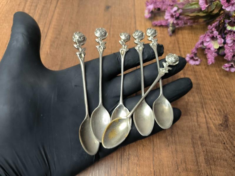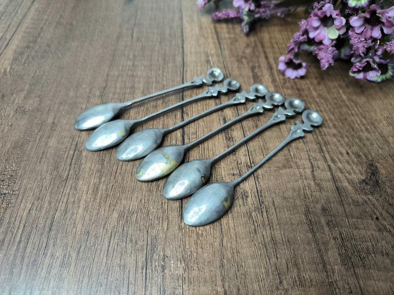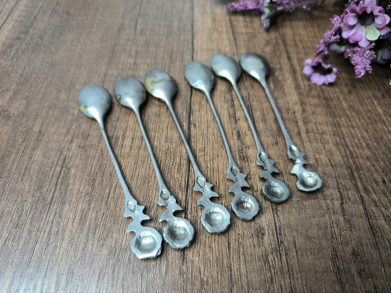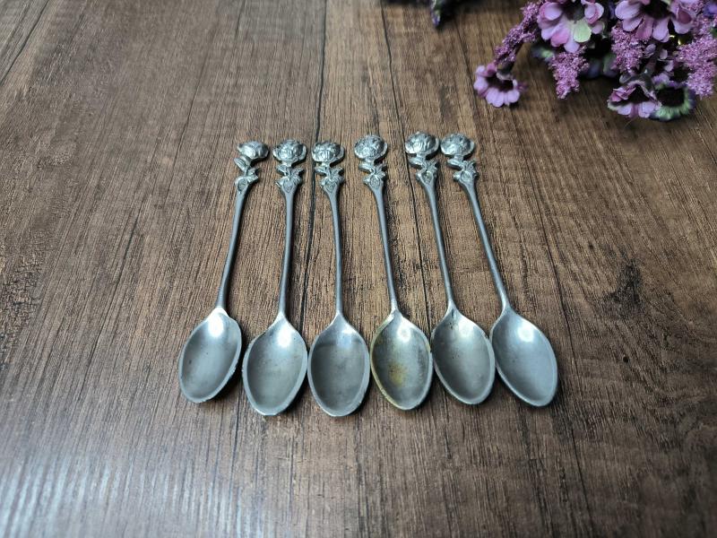 Antika Gümüş Renk Çay Kaşığı 6 ADET - Çiçek Desen Kaşık - Çay - Tatlı Kaşığı - A9 başlıklı antika/koleksiyon objesinin menşei belirtilmemiştir. Objenin ait olduğu dönem bilinmeketedir.