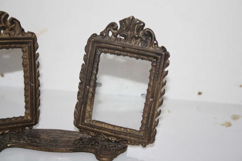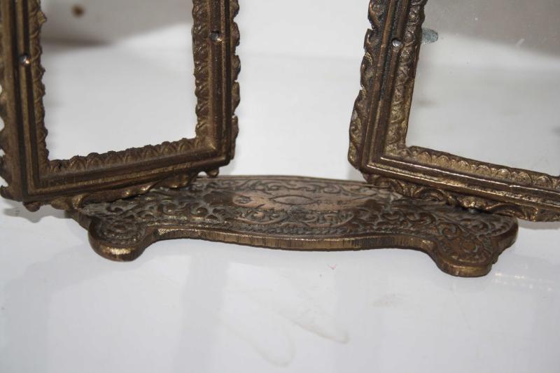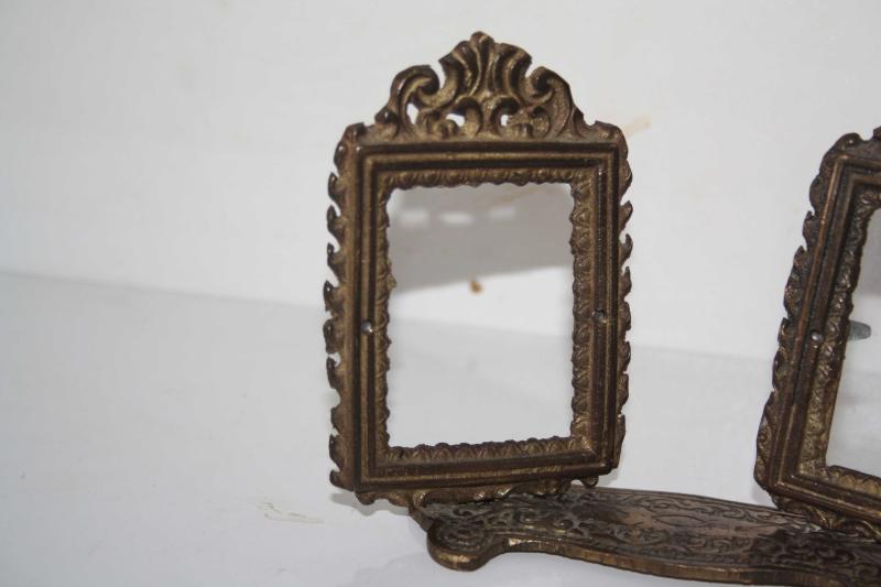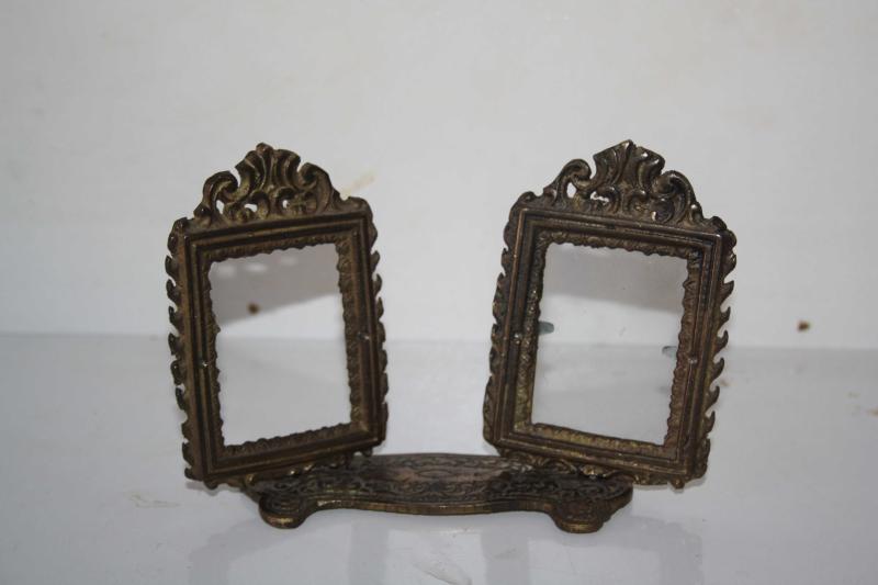 " Antika " İKİLİ PİRİNÇ KÜÇÜK RESİMLİK-ÇERÇEVE (ÇİFT RAF başlıklı antika/koleksiyon objesinin menşei belirtilmemiştir. 1940 sonrası dönemine aittir.
