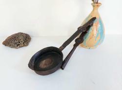 Antika Kahve Kavurma Tavası - Katlanır Saplı Osmanlı Antika Tava