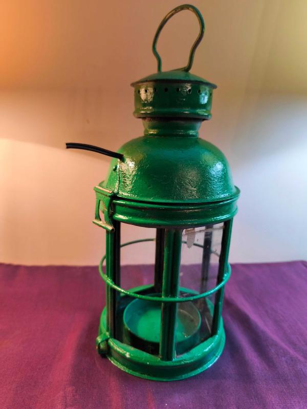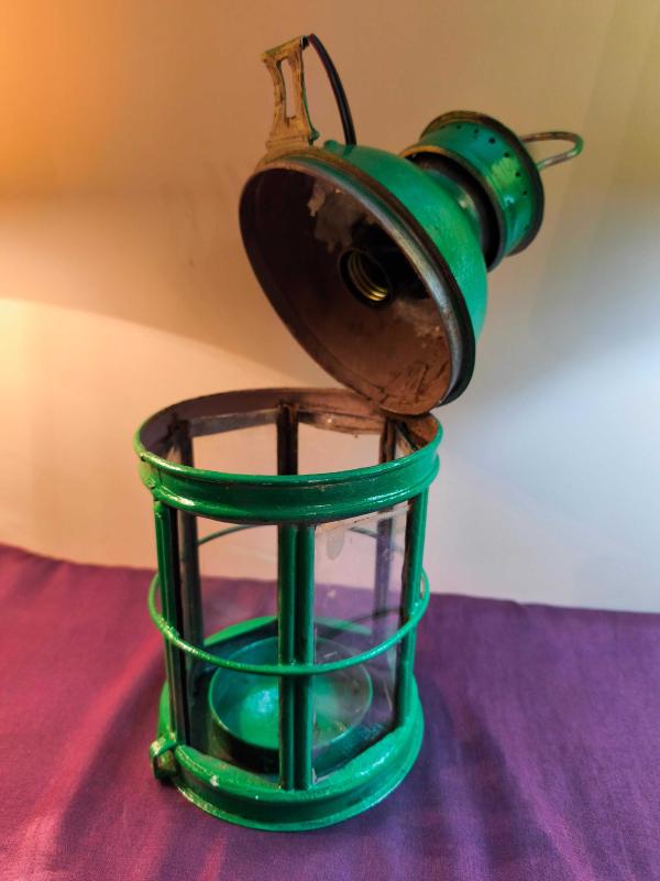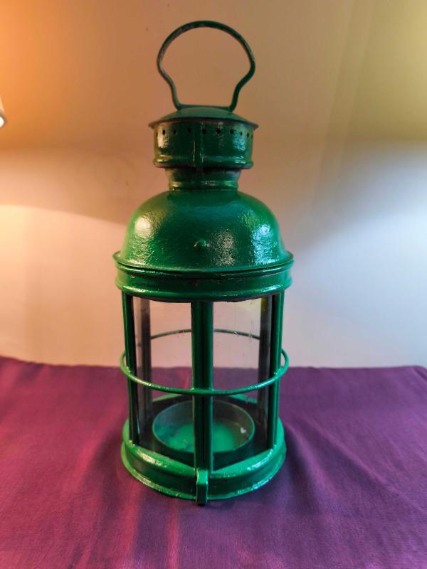 Çok eski Fener ya da mumluk da denilebilir. Yeşile boyanmış. Dikdörtgen camlı ( 1 adet camı eksik her camcı takar ) iyi durumda kırık çatlak yok. Sonradan duy eklenmiş ama çıkarılabilir. Bulması zor. Nadir bir antika.