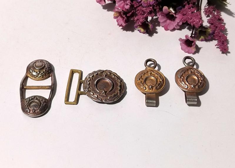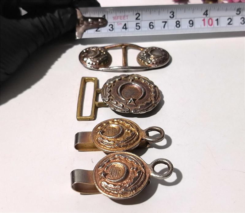 Antika metal askeri kemer süslemeleri ve kemer tokası 4 Adet - hepsi gönderilecek Kabartmalı Model Eski - Sağlam - Temiz Ölçü Sonda - İade Yoktur